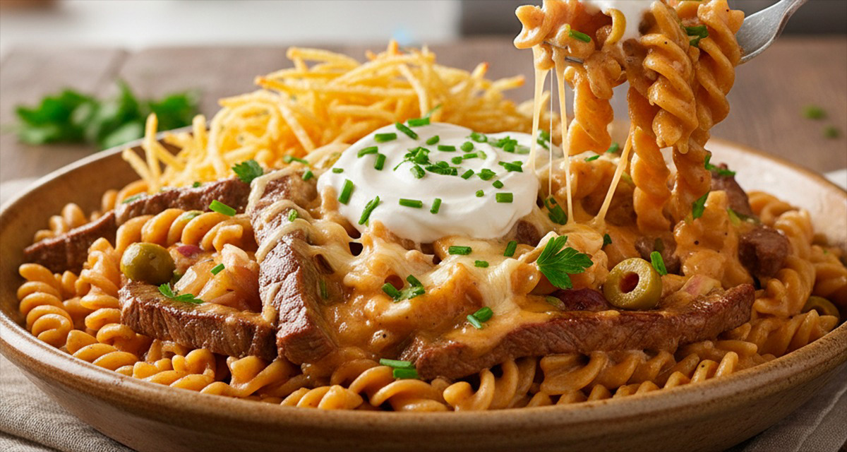 Estrogonofe de carne com macarrão. A combinação perfeita!