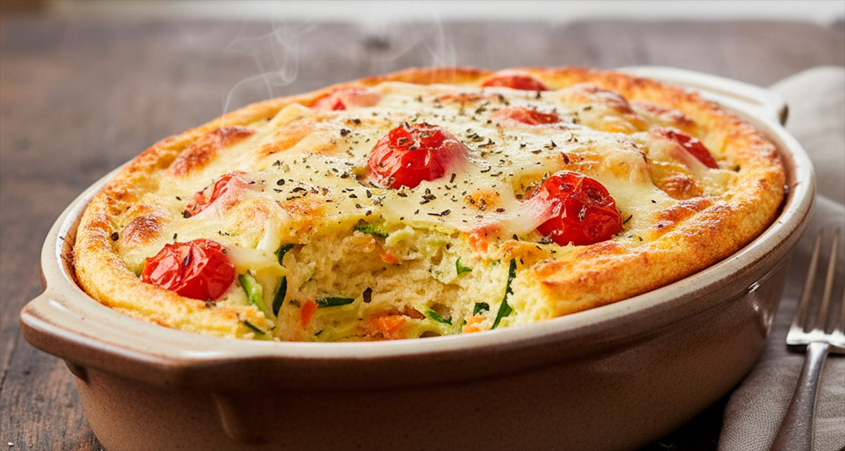 Em um recipiente, adicione a abobrinha e a cenoura raladas, a muçarela, os ovos, o sal, a pimenta-do-reino e misture bem.